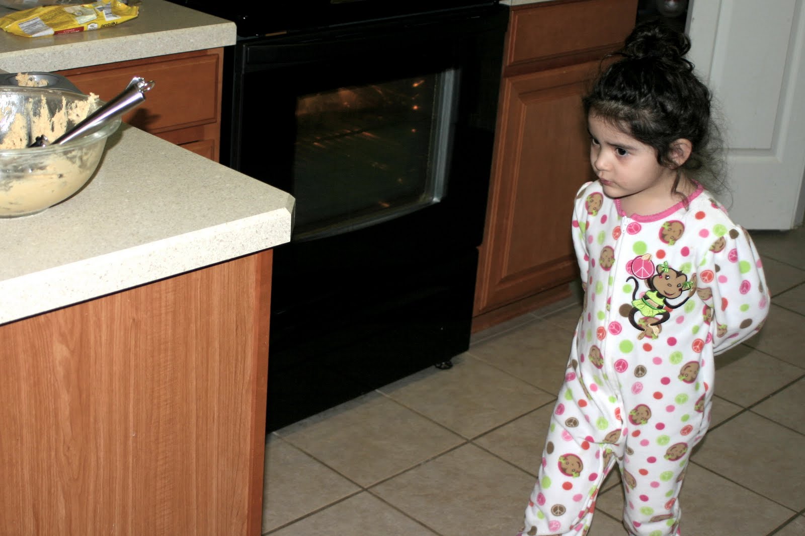 Overnight we received a blanket of ice covered in beautiful snow. It was terrible to try to drive on (speaking from experience), but made for another great day together as a family. What to do when cooped up all day? Cook, of course! I was going to make cupcakes, but didn't have my cake mix, so we made cookies from scratch! I've never made the Nestle Toll House recipe from the back of the morsels bag until today, and they were a hit!